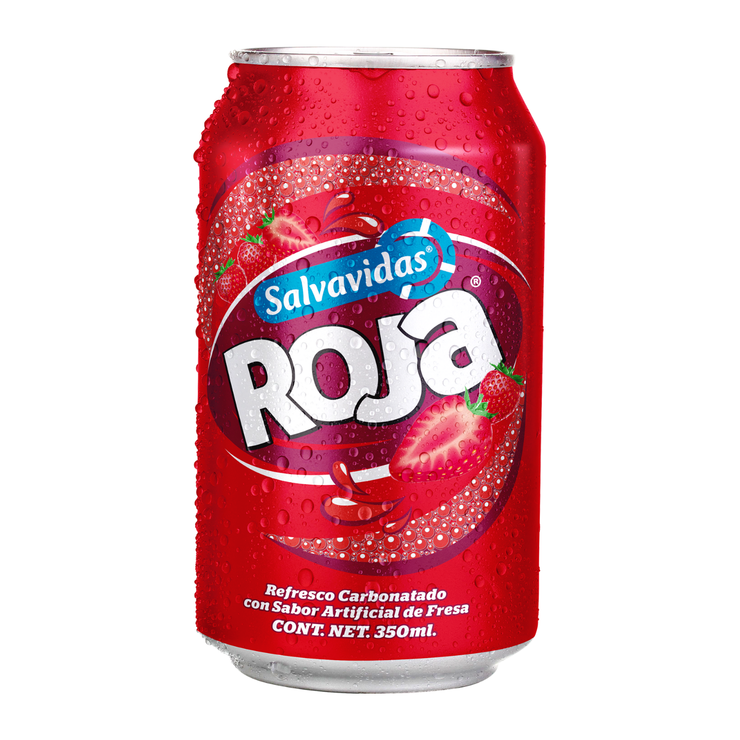 Caja de 24 unidades, Salvavidas Roja Lata 12 onzas. Bebida Carbonatada sabor Fresa.