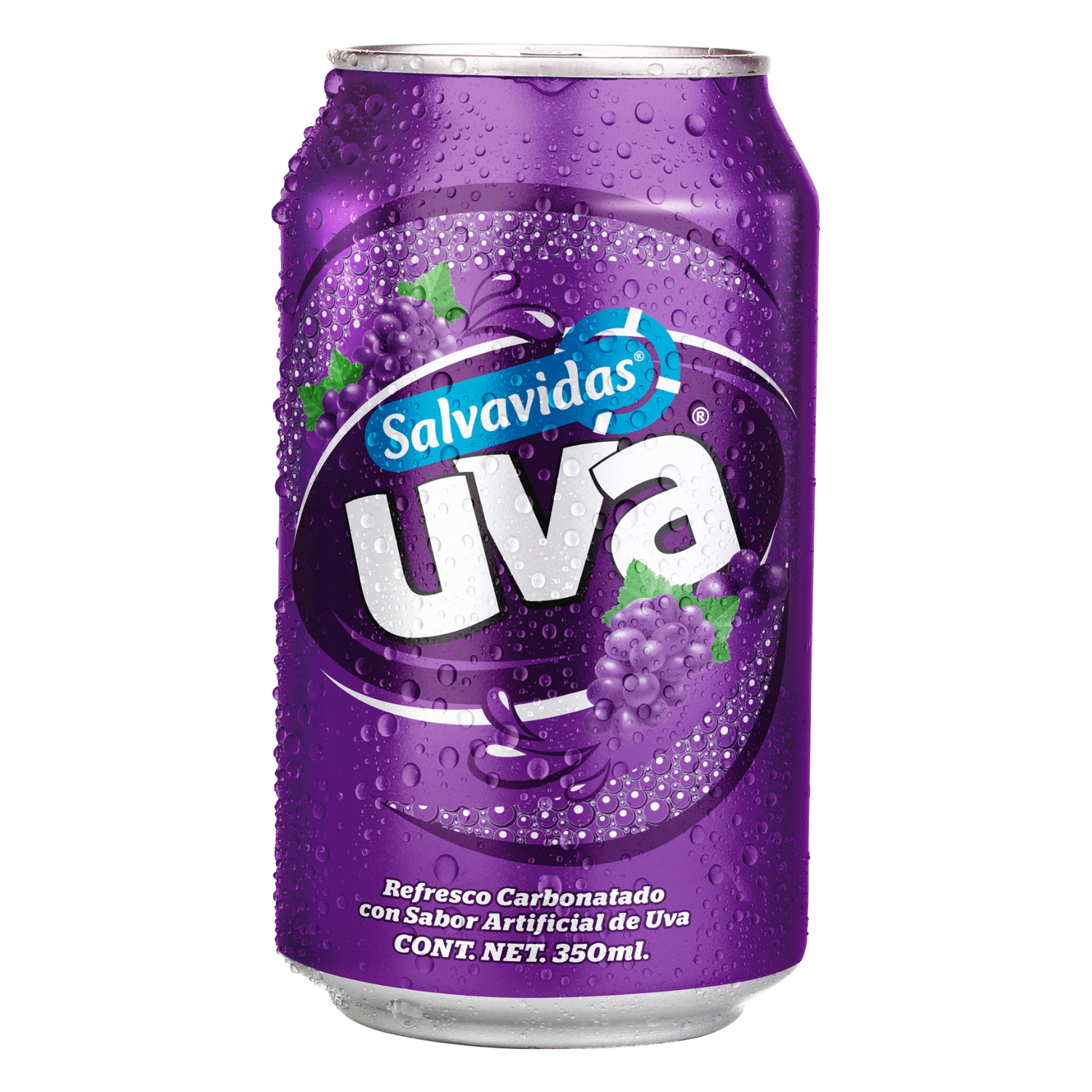 Caja de 24 unidades, Salvavidas Uva Lata 12 onzas. Bebida Carbonatada sabor Uva.